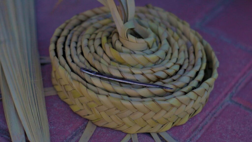 L’ofici de la llata reunia al poble: els homes collien els ullols del margalló, mentre que les dones es dedicaven a trenar-los i cosir-los per a crear cabassos. A casa o al carrer, compartien aquest treball en un ambient comunitari i festiu. Les peses, que es decoraven amb tints de fugina per a aconseguir colors vius, sovint eren veritables obres d’art, fruit de l’habilitat i el mestratge de les dones.